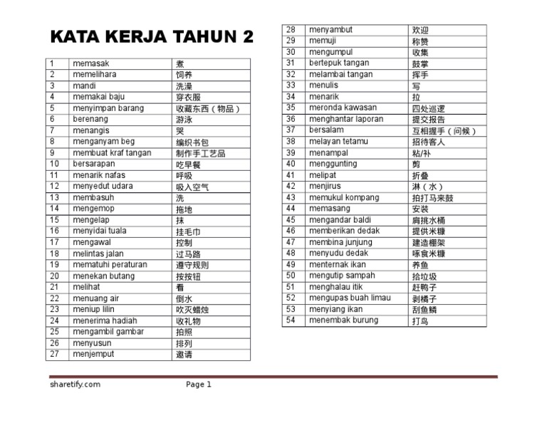 Tahun 2 Kata Kerja Sumber Pengajaran